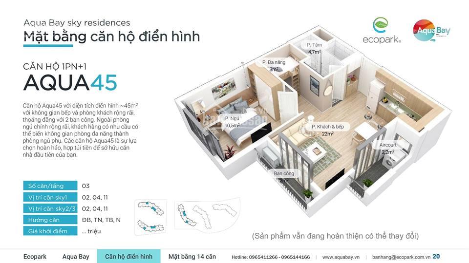 căn hộ 45m 1 phòng ngủ 1 vệ sinh 1 phòng đa năng